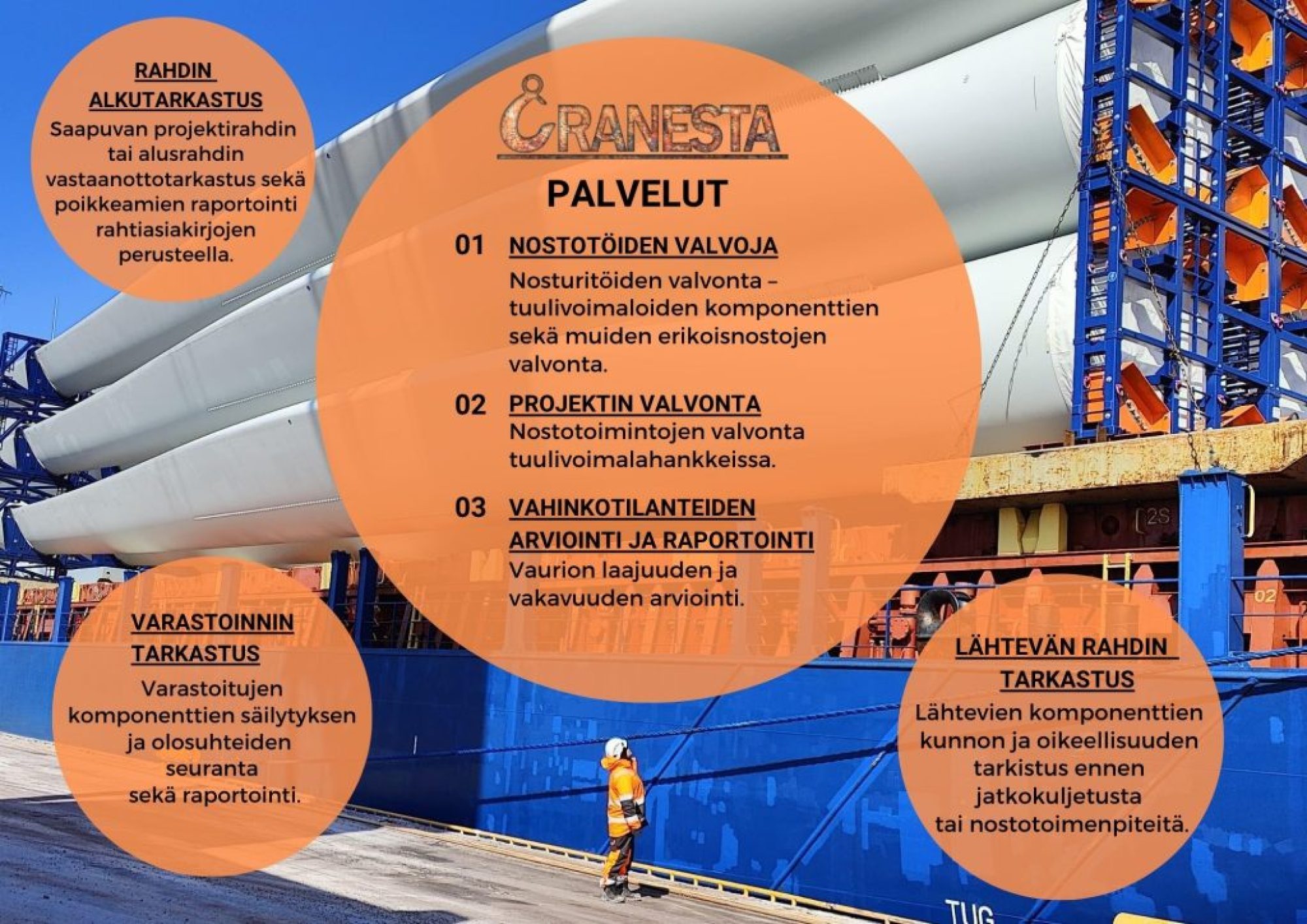 Tarjoan asiakkaille kokonaisvaltaisen ja räätälöidyn palveluratkaisun, joka kattaa tuulivoimalakomponenttien nostotöiden valvonnan projektin jokaisessa vaiheessa.